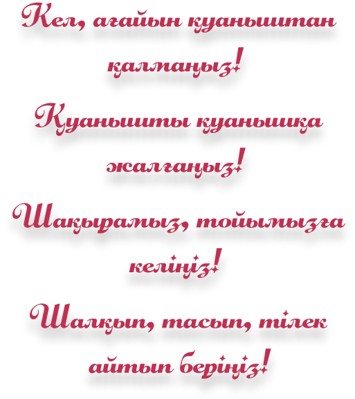 Құрметті ағайын-туыс, бауырлар, құда-жекжат, нағашы-жиен, бөлелер, құрбы-құрдас,